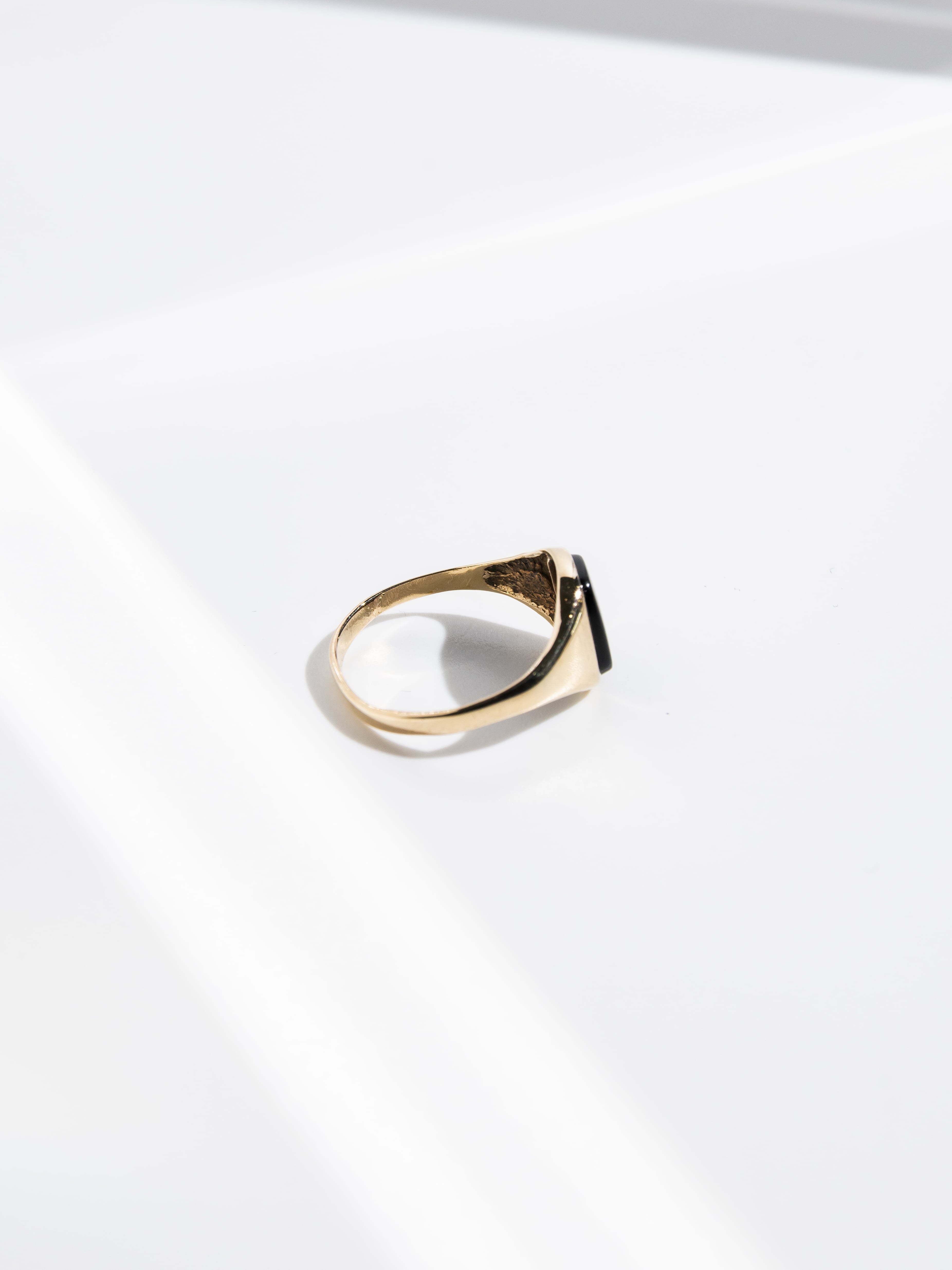 オニキスをあしらったヴィンテージロイヤルゴールドのシグネットリング。