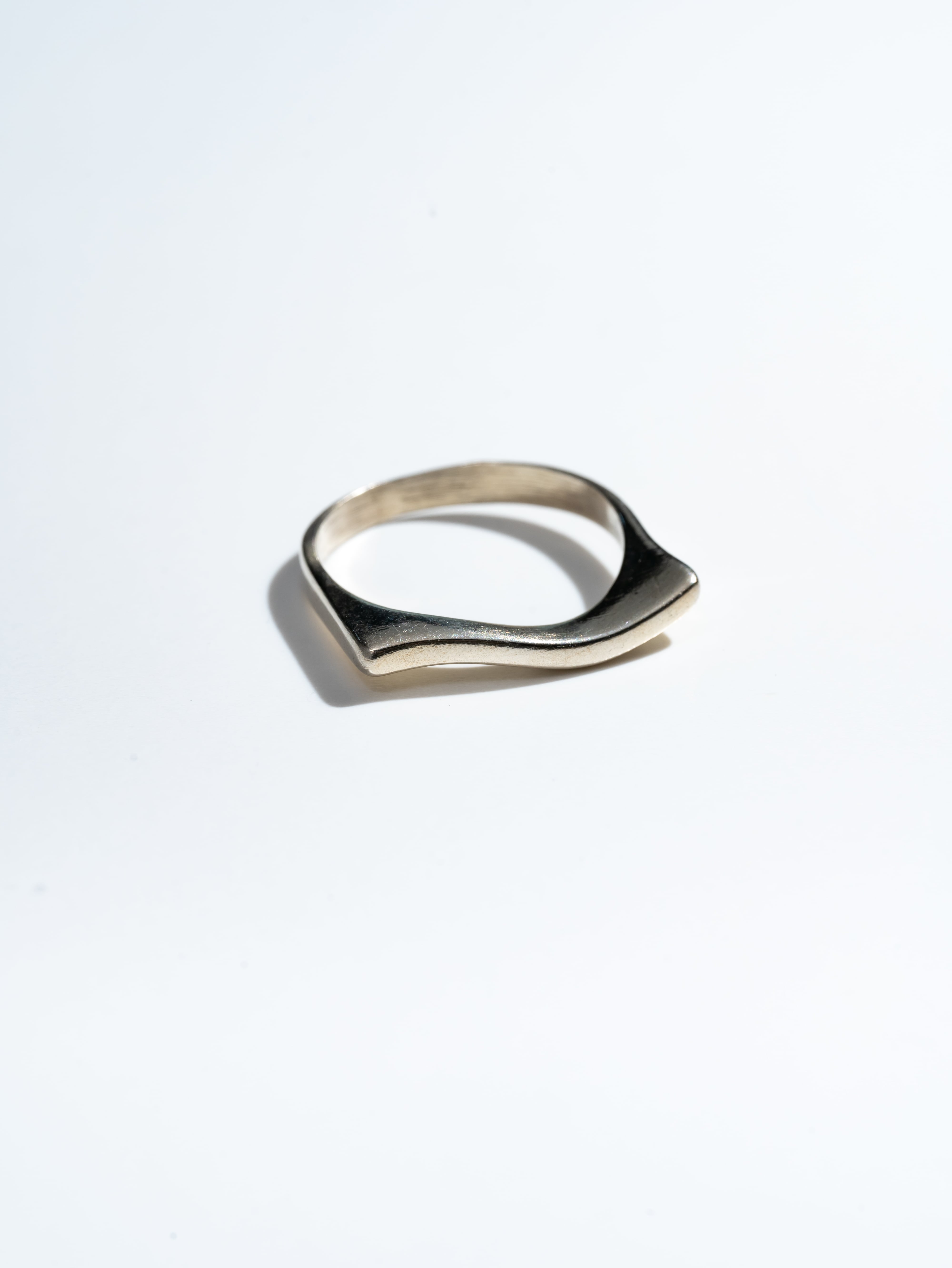 湾曲した形状でユニークな印象のモダンシルバーリング。