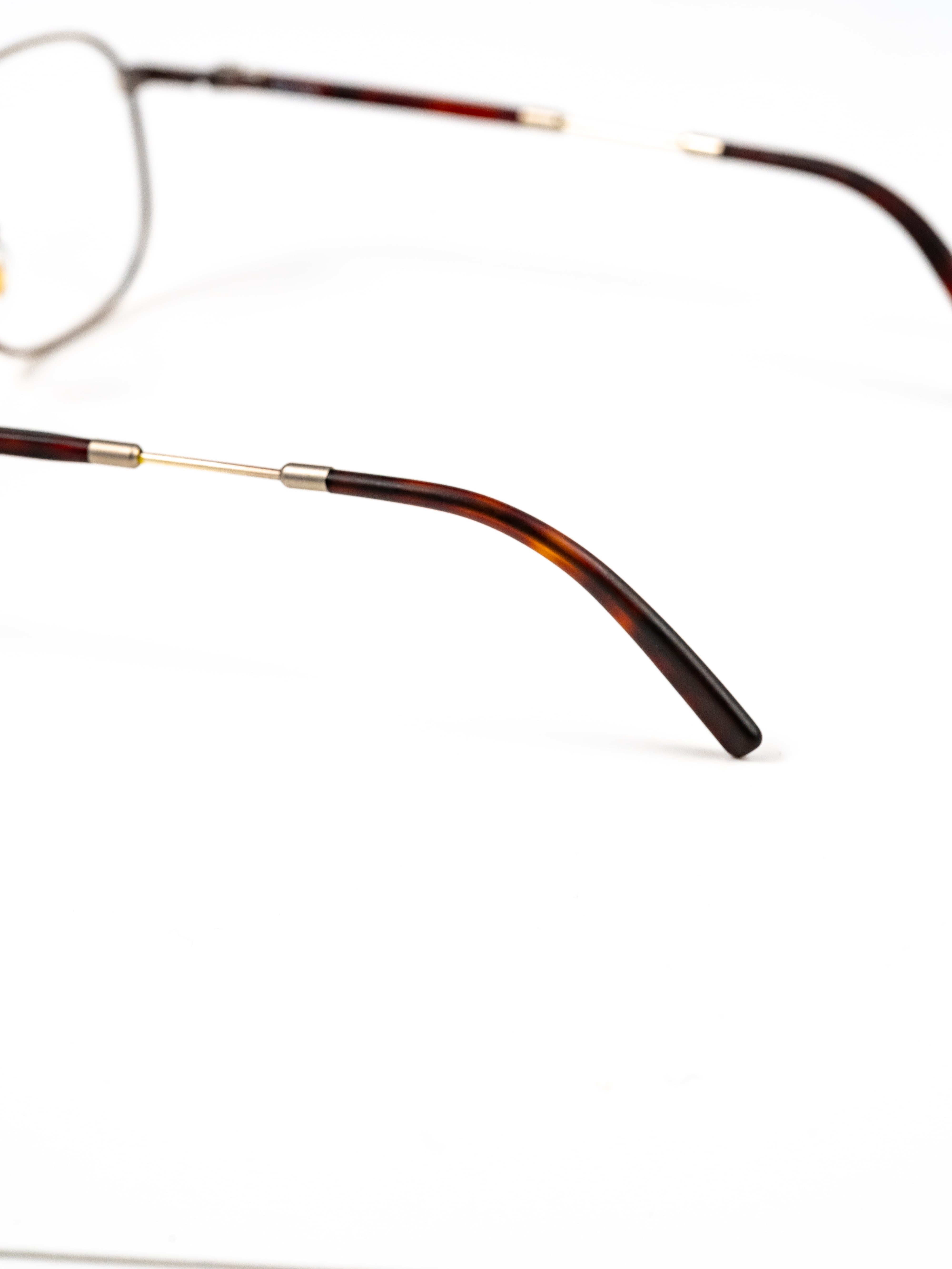クラシックなリムラインの彫金やテンプルのデザインを有する